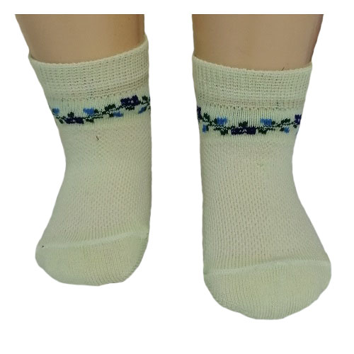 Носки укороченные в сеточку однотонные с орнаментом под резинкой в виде цветочков.