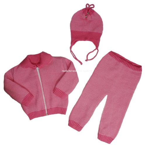 Костюм связан двойной вязкой, с нитью люрекса.